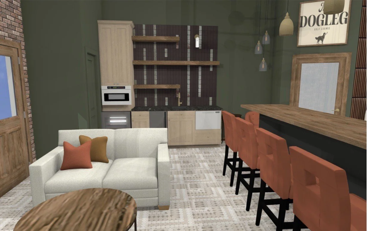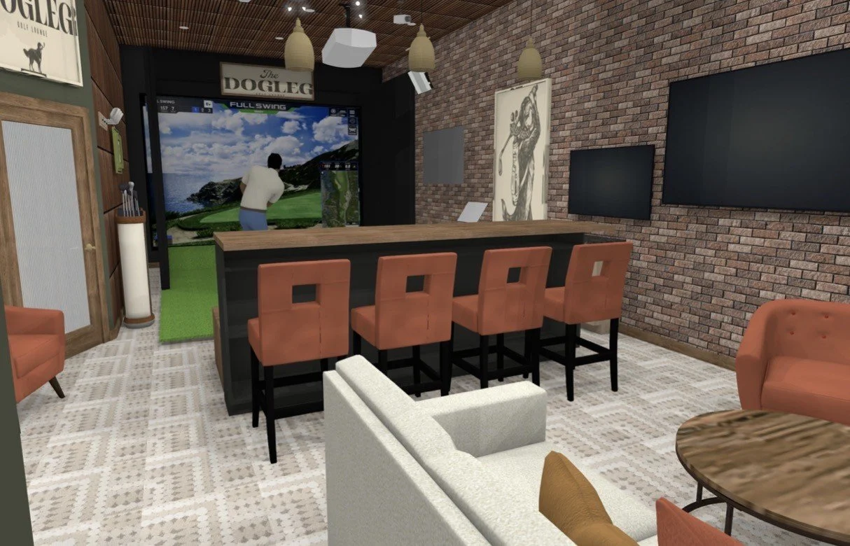 Redefine your game at The Dogleg Golf Lounge. The Dogleg offers 24/7 access to a high-end Full Swing Simulator for year-round practice, leagues, tournaments, and the ability to play famous courses around the world. Partner the convenience of quick rounds of golf with a luxury lounge. This facility will be membership only. Inquire now for an opening soon!